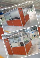 Descripción: Armados sobre estructura de Aluminio en modulos independientes, Perfileria con columnas y zcalos pasacables con burletes y tapas desmontables. Diversidad de diseos y terminaciones: Prepintado al horno con recubrimientos Acrlicos o Epoxi, Anodizados (proceso electroltico). Mdulos Ciegos : Paneles melamnicos (compactos de 18mm.) Placas de revestimiento color con aislante interior Mdulos Vidriados: Cristales Lnea FLOAT de V.A.S.A. (incoloros o tonalizados) Vidrios Fantasa Mdulos Mixto: Con combinacin de Materiales anteriormente mencionados Puertas: Placas (enchapadas dem Paneles) Combinadas (Aluminio y Vidrio) De Cristal Templado
