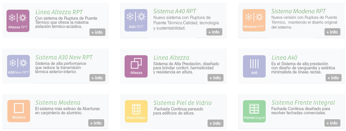 Descripción: Lderes en aberturas de aluminio en toda la Patagonia Desde nuestros comienzos nos hemos dedicado a la fabricacin de aberturas a medida de Aluminio Aluar. Hoy continuamos nuestra senda incorporando el desarrollo de productos en medidas estndares; actualizando nuestras aberturas con las ltimas prestaciones en vidrios laminados, vidrios especiales y termopaneles de doble vidrio hermtico; y desarrollando las principales lineas de Aluminio Aluar. En busca de la mxima calidad, incorporamos a todos nuestros productos las Automatizaciones y Cerraduras de la Empresa Italiana Giesse. Certificaciones alcanzadas Pertenecemos a la Red de Carpinteros Certificados por Aluar, en 2016 alcanzamos la categora superior INTECNA, el mximo estndar en el mercado. Esta certificacin nos permite resolver integralmente la ingeniera de las obras ms innovadoras. Red de Distribucin Contamos con altos estndares de calidad y nuestra prioridad es facilitar todas las opciones para su proyecto, asegurando el balance entre costos y calidad. Contamos con una flota propia por tierra que garantiza logstica y distribucin en las principales ciudades de la Patagonia. Calidad en todas las etapas de produccin Nos destacamos por ser lderes en la fabricacin de cerramientos en aluminio. El compromiso y la experiencia con que trabajamos nos avalan como la principal alternativa en cerramientos para viviendas y empresas en la Patagonia.